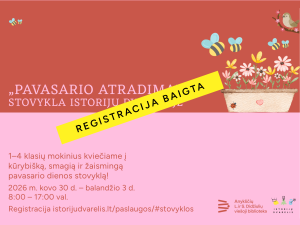 Stovykla vyks 2026 m. kovo 30 d. – balandžio 3 d. Kviečiame 1–4 klasių mokinius į kūrybišką, smagią ir žaismingą